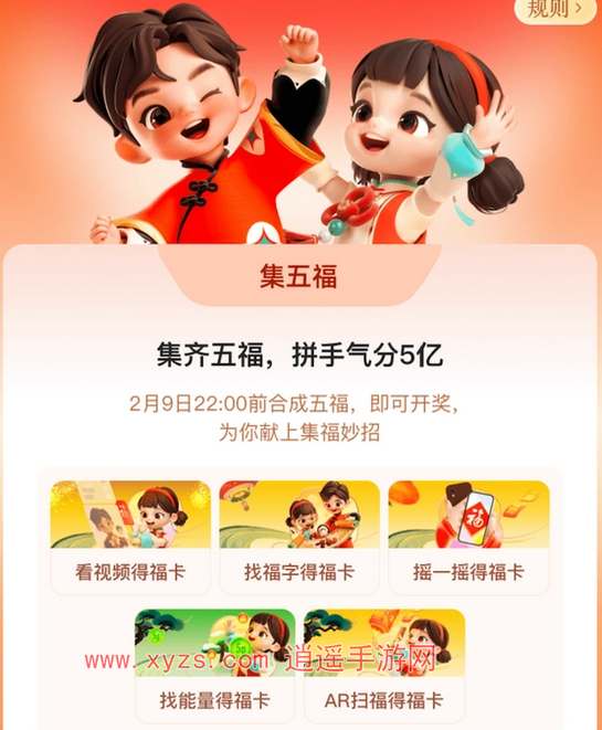 1、在2月1日-9日12:00,集福卡时有机会成为「五福小福星」